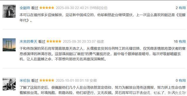 吴石践行了自己在第一集的话,若一去不回,便一去不回。 这部剧的口碑,观众对这部剧的评价也很一致,真实。